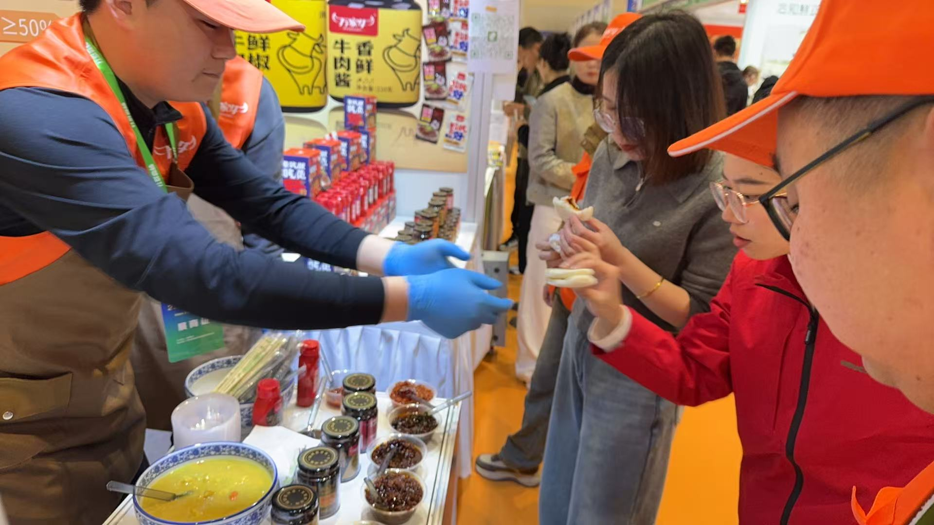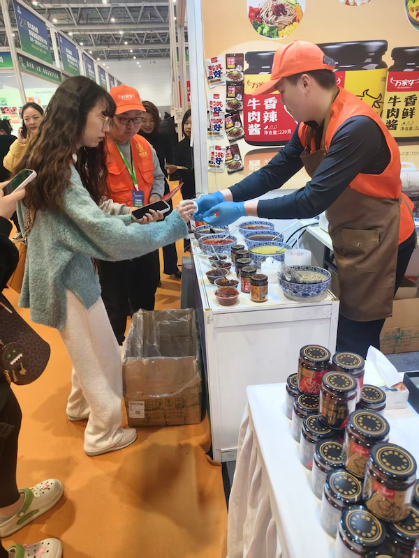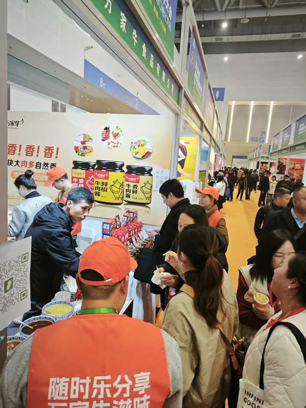 展会期间,为加深客户对石榴视频污版产品的了解,石榴视频污版设置了互动体验区,邀请参会者现场品尝牛肉酱,并分享产品的制作工艺和品牌故事。